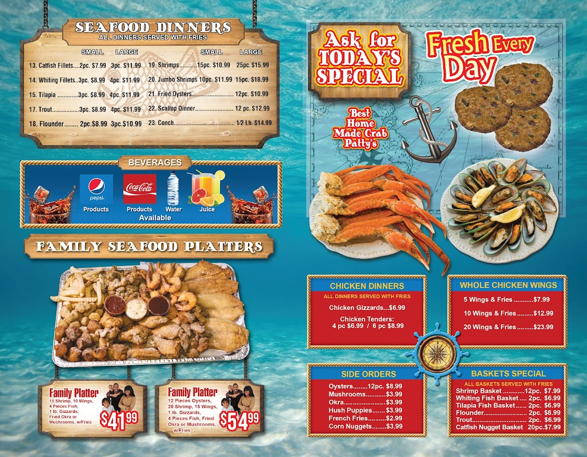 You can expect a variety of freshly steamed seafood, crispy fried shrimp, and seasoned crab dishes, all prepared with care to showcase their natural flavors. The menu also features options like fried chicken wings and gizzards, adding a familiar touch for those seeking hearty, flavorful snacks. Side dishes such as fries and corn nuggets complement the main offerings, balancing the meal with textures and tastes that feel homey and approachable.